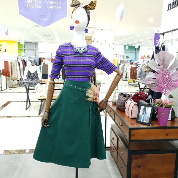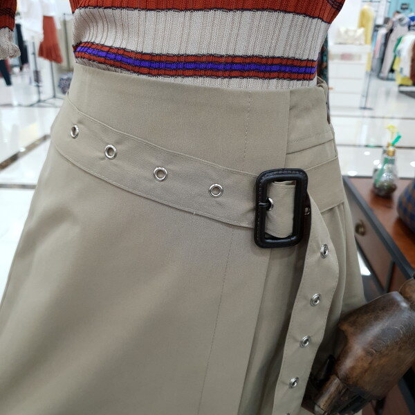 벨트포인트 A라인 스커트예요.군더더기 없는 깔끔한 라인과 세련됨이 물씬 풍기는 멋진 스커트로 손색이 없네요.벨트포인트로 허리 라인을 더욱 예쁘게 연출 하실수 있고 무릎덮는 기장감 또한 마음에 쏙드는 상품이예요.앞트임이 들어가 있어 살짝살짝 다리라인 또한 예쁘게 들어나 여성미까지 굿이예요