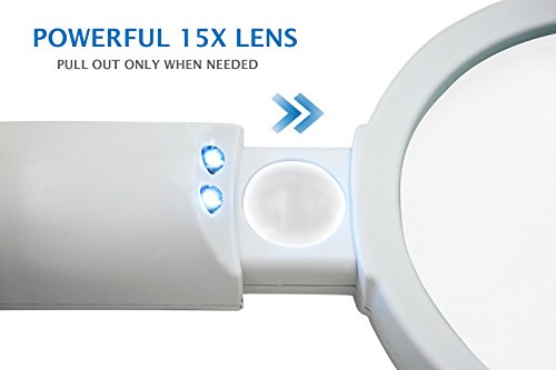 RETRACTABLE LENS DESIGN: Comes with a large 3.5 inches 2X magnifying lens and a 0.7 inch 15X high power spot lens that can be pulled out only when needed