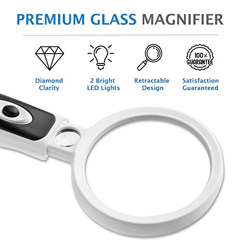 Fancii LED Lighted 2X Magnifying Glass with 15X Zoom - Large Premium Glass Lens Handheld Magnifier with Light For Reading, Jewelry Appraisal, Coins, Stamps, Hobby and Craft B019L3Y9K8