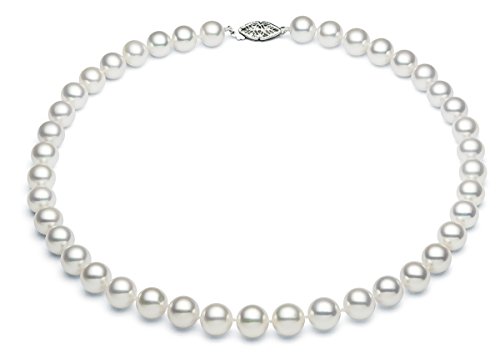 This elegant white Akoya cultured pearl necklace makes an impressive gift. It is knotted in-between each cultured pearl and finished with a beautiful sterling silver clasp. These cultured pearls have A+ quality, with a good luster and smooth surface. This jewelry is hand made by our skilled jewelers in USA and quality controlled strictly by our cultured pearl experts. It comes with a high quality jewelry box and a certificate of authenticity.