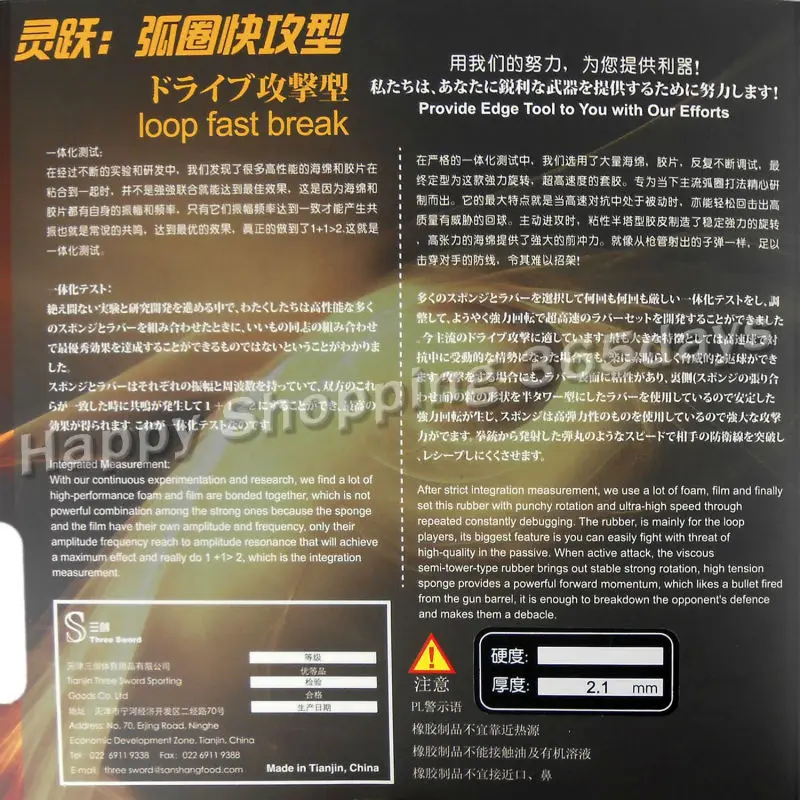 Brand Name:Three -Sword Rubber:Pimples In Model Number:LEAP Weight:Light Tip Heavy Handle (Defensive) Bottom:only rubber Grip Means:only rubber Baseboard Layer Number:only rubber store number:SJ004LYHK Sponge Thickness:2.1mm Place of Origin:China (Mainland)