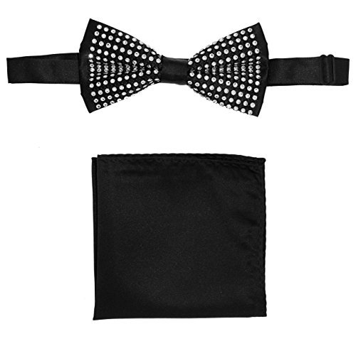 (Vittorio Farina)/Accessories/Ties/DIRECT FROM USA/Mens Black Clear Crystal Rhinestone Bow Tie Hanky Set
