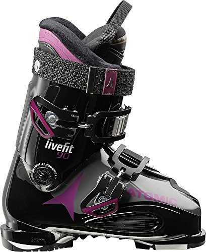Studio : ATOMIC Publisher : ATOMIC Binding : Misc. Product Description KEY FEATURES Automatically adjusting Live Fit Zones give you a customized fit every time you step in Among the easiest boots to put on wear and take off At this point most boots can be customized to fit you perfectly but only the Atomic Live Fit 90 Womens Ski Boots do it automatically every time you put them on Thats because theyre the only boots with special Live Fit Zones on either side of the boot these stretchy panels have enough give that youll never feel pinched or squeezed inside but still offer plenty of hold for reliable performance That means it doesnt matter what socks you wear or what the weather is like youll always have the best fit for comfort and performance SPECSLast Width 102Skill Level Intermediate/AdvancedFlex Stiff 0