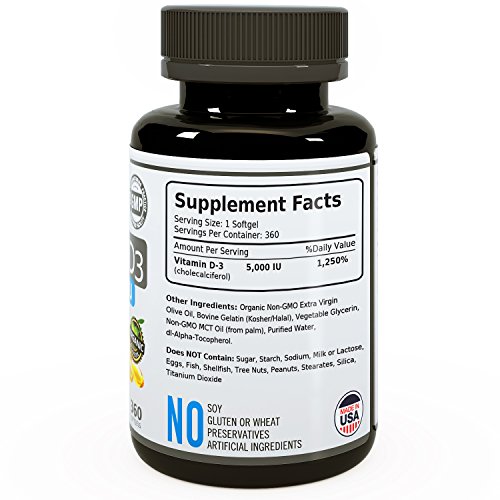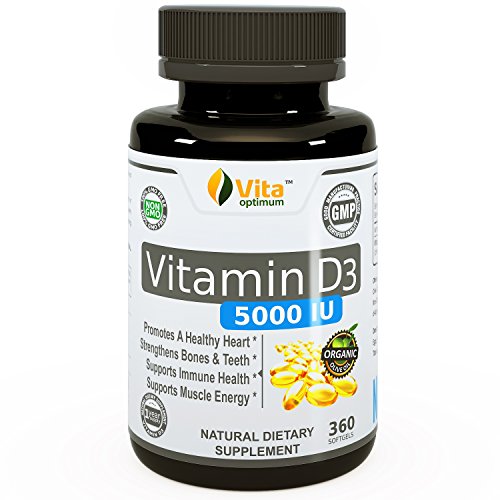 -. Binding : Health and Beauty -. Brand : Vita Optimum -. Feature : In Certified Organic & GMO-Free Olive Oil - So you can feel good about what you put into your body / Pharmaceutical Grade Vitamin D3 contains the same Biological form of vitamin D produced by your body / Tiny Softgel - Makes it very easy to Swallow, but still contains 5000 IU per softgel / 1 Year Supply - 360 Softgels - Uses Kosher & Halal Certified Softgel Gelatin / Made in the USA - in a FDA Registered Facility - strict cGMP & NSF certification -. Label : Vita Optimum -. Manufacturer : Vita Optimum -. ProductGroup : Health and Beauty -. ProductTypeName : HEALTH_PERSONAL_CARE -. Publisher : Vita Optimum -. Studio : Vita Optimum -. Title : Vita Optimum Vitamin D3 5000 IU