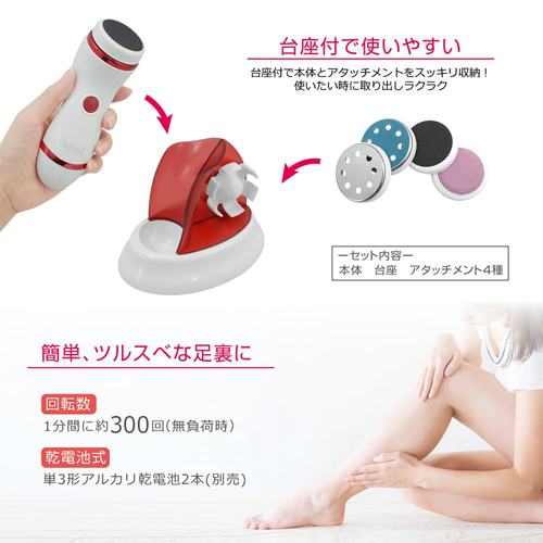 ●かかと/足裏の角質を4種の回転やすりで簡単にケア 1分間に約300回転(無負荷時)