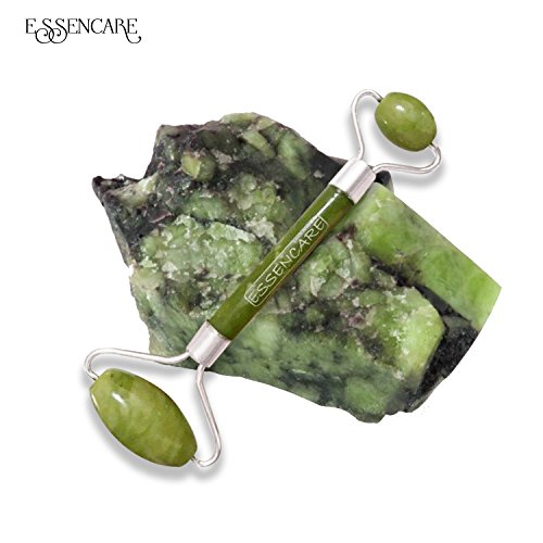 **ESSENCARE PREMIUM AUTHENTIC JADE ROLLER MASSAGER ANTI-AGING TREATMENT using the highest quality jade. This powerful stone has been used for healing by Eastern traditional cultures for thousands of years. It emits energy waves of a special nature. They penetrate deep into tissues to stimulate circulation, create a healing energy process, and encourage better use of nutrition. Jade can heal face and skin to eliminate wrinkles, fine lines, crows feet, and other signs of aging. Your skin becomes younger and helps you roll back the years to look more youthful. Use this jade roller for a few minutes each night before bed. Then get ready for all the compliments you're going to get!