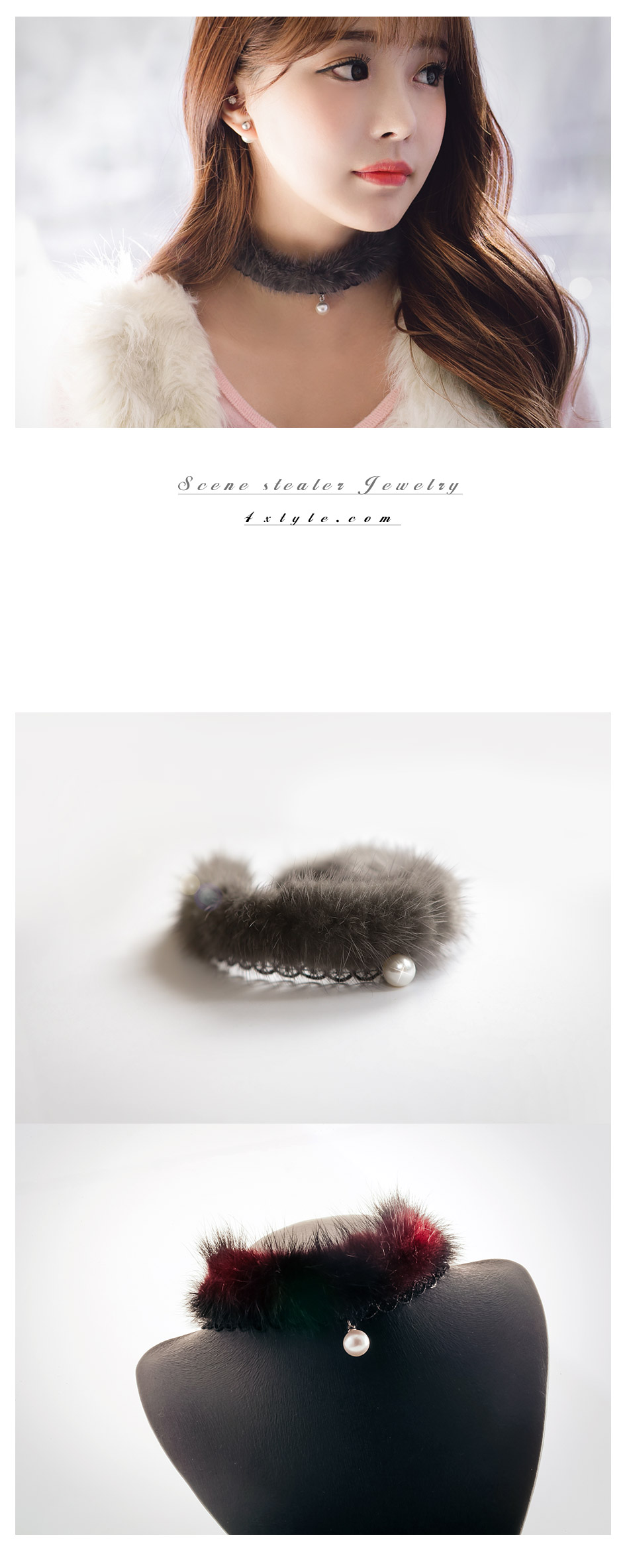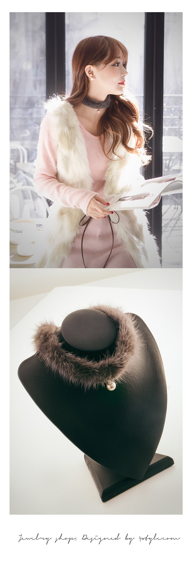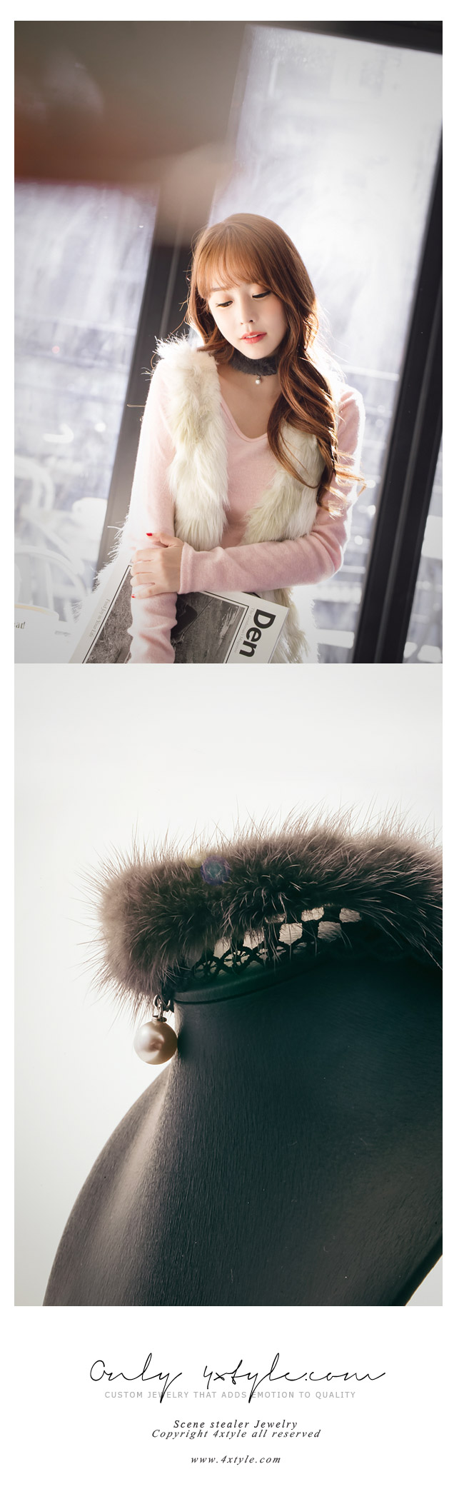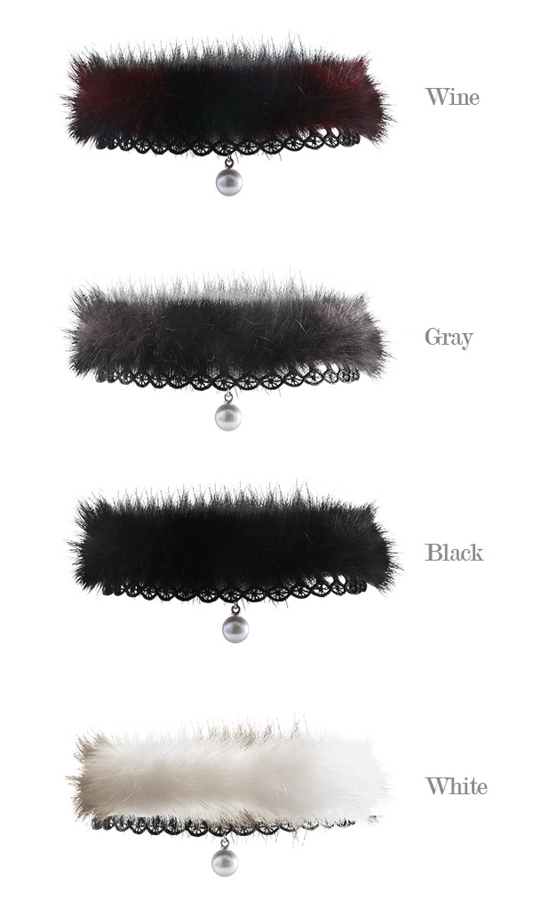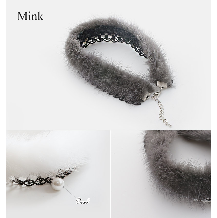레이스와 진주장식으로 러블리한 매력을 가득담은 밍크 소재의 초커 목걸이.