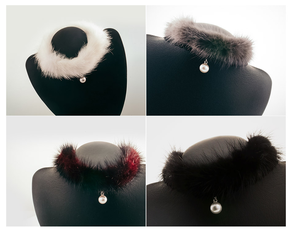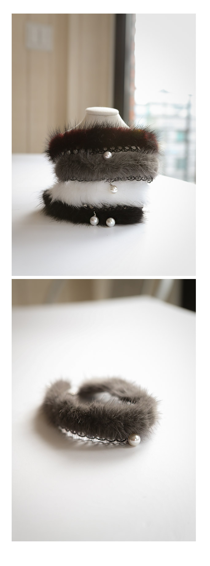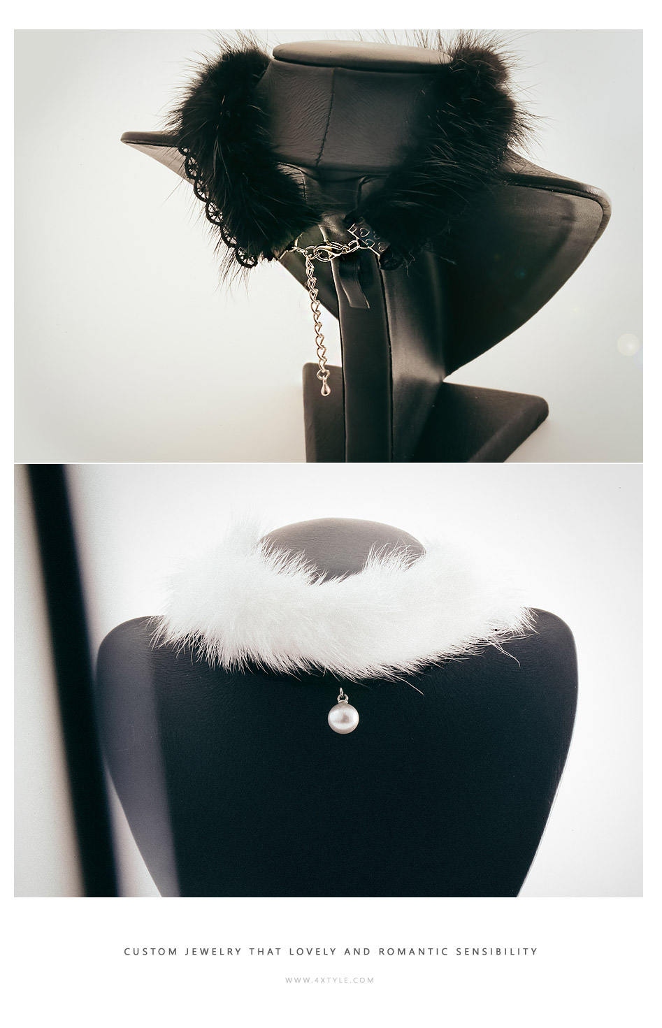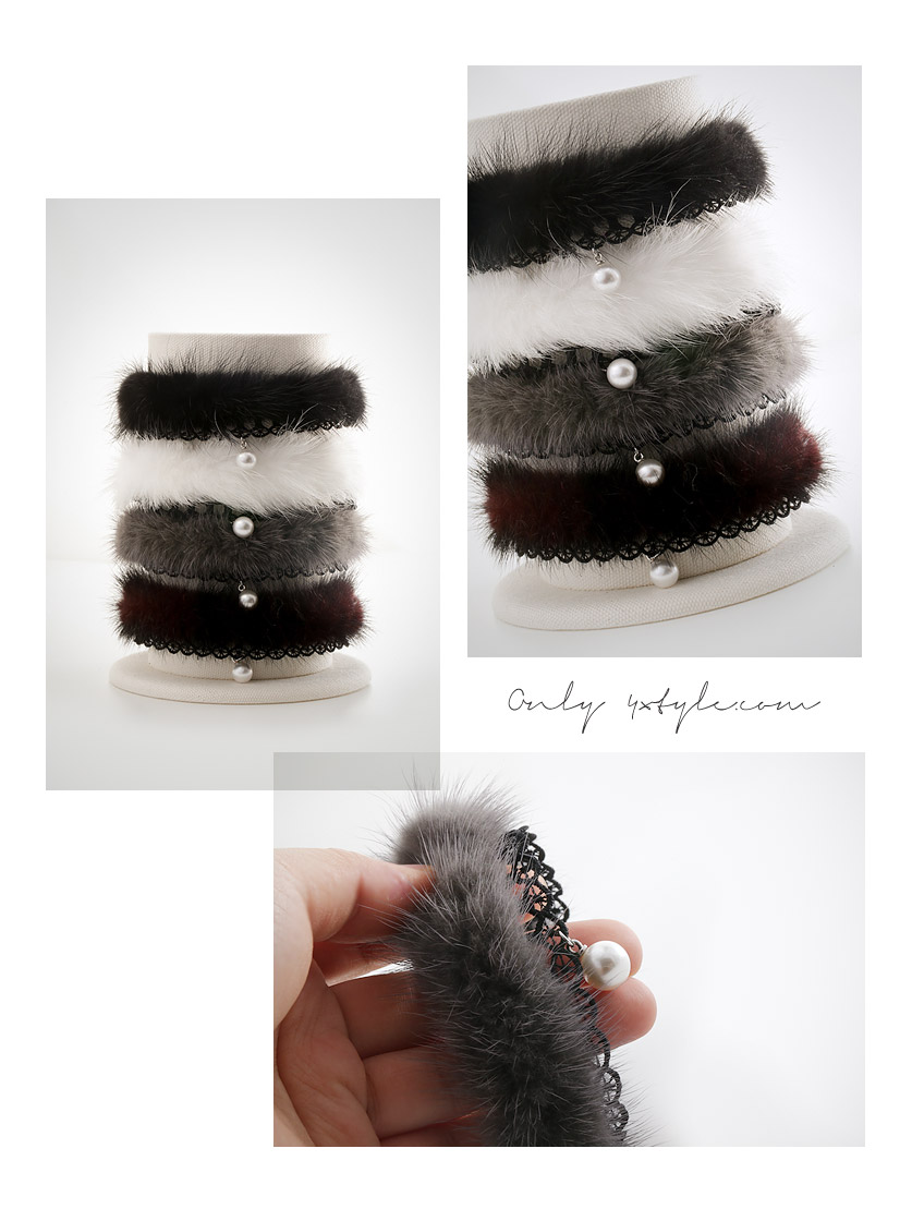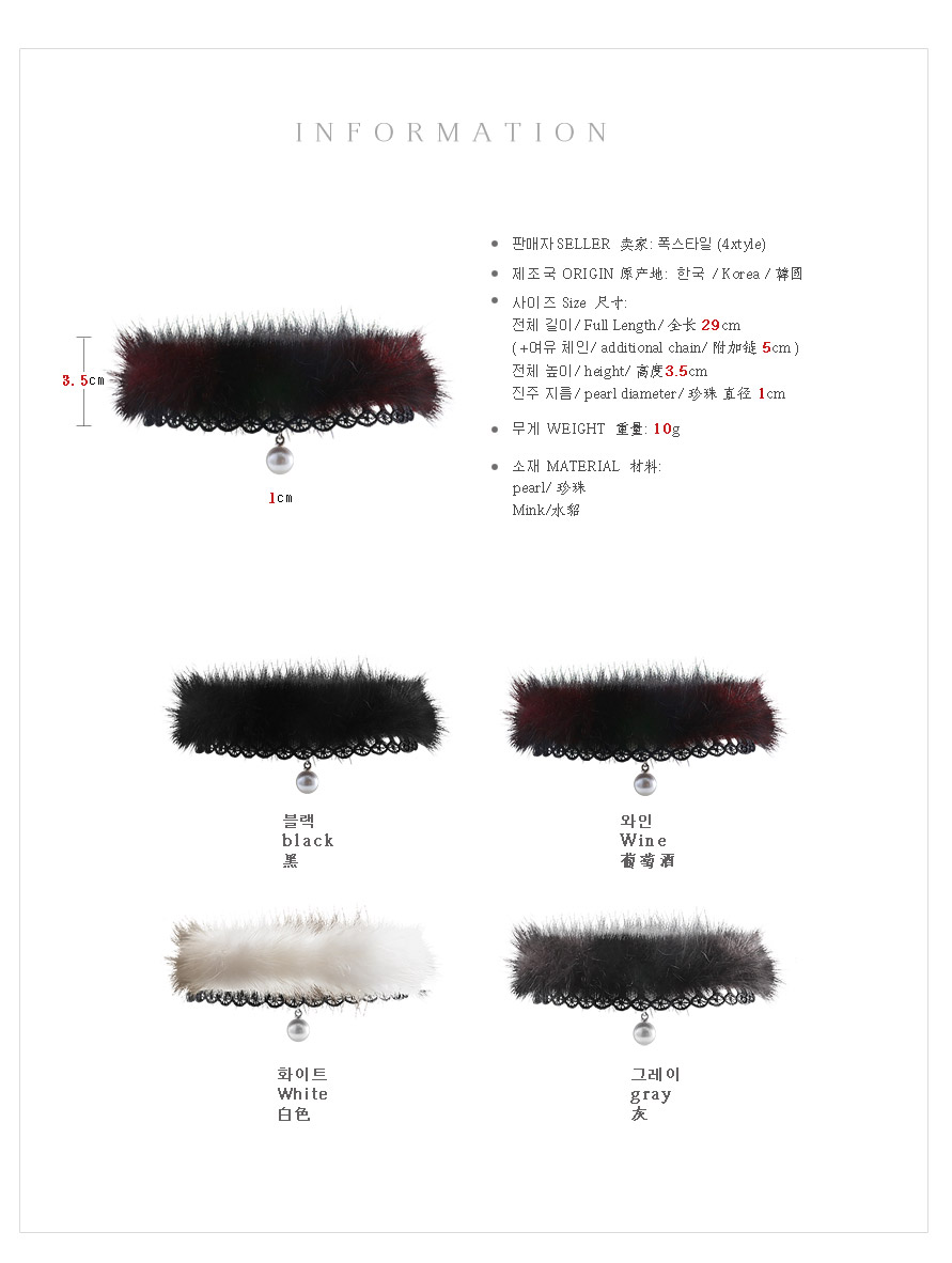 레이스와 진주장식으로 러블리한 매력을 가득담은 밍크 소재의 초커 목걸이.