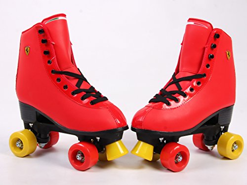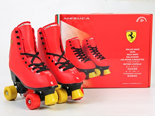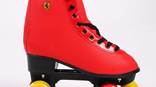 Studio : Dakott LLC Publisher : Dakott LLC Binding : Sports Product Description Ferrari amazing classic roller skates classic skates with leather-look vinyl upper and secure lacing system. Ferrari 58mm high rebound urethane wheels for better shock absorption and durability, precision bearings for smooth rolling. Ferrari unique material used for preparing boots, shoes car seats. 0