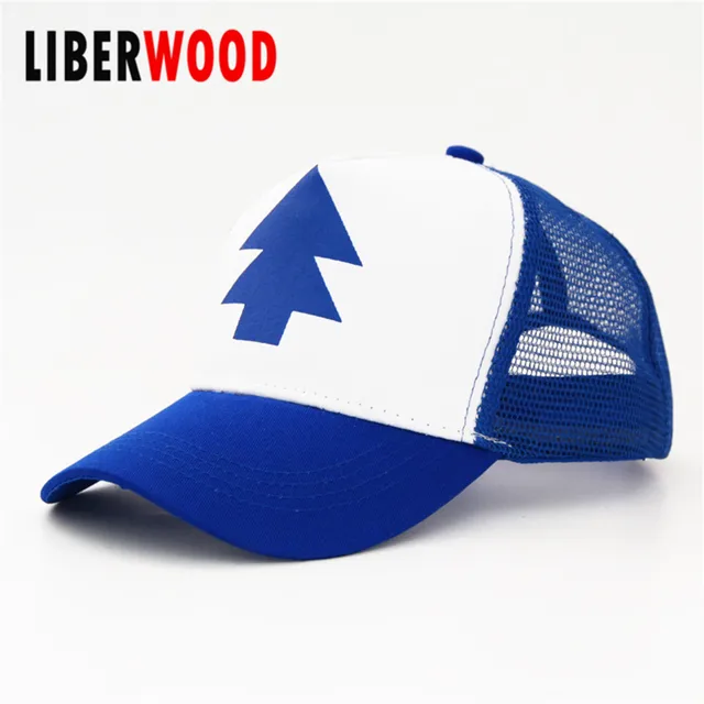 | [해외]국자 중력 떨어지는 만화 새로운 곡선 빌 인쇄 블루 소나무 모자 캡 트럭 |