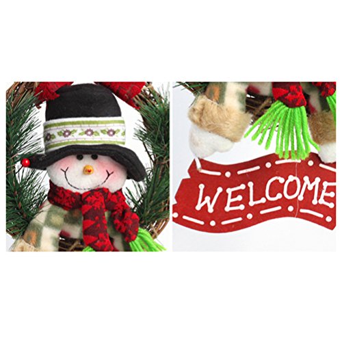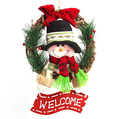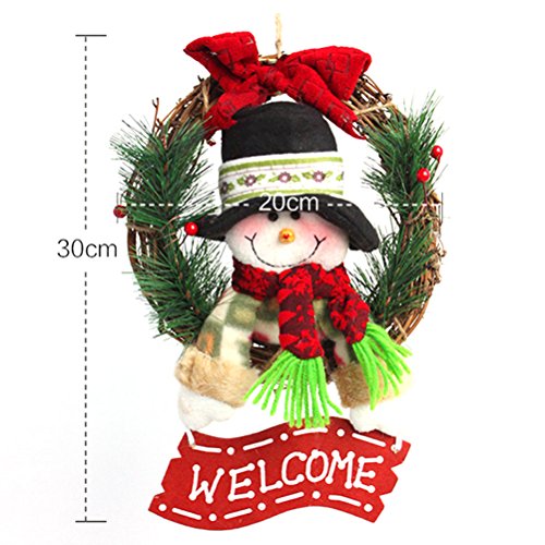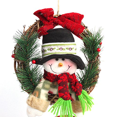 Tinksky Christmas Wreath For Front Door Hang Garland with Santa Claus Snowman Ornaments Natural Rattan Wreath Holiday Door Hanger Wall Car Decoration 30cm (Snowman Style)
