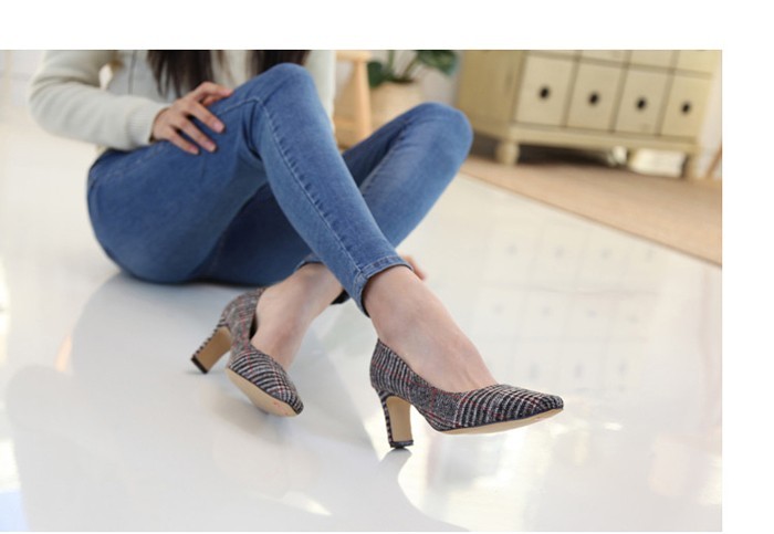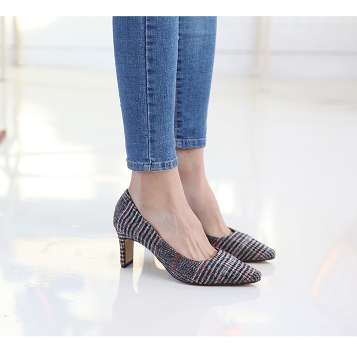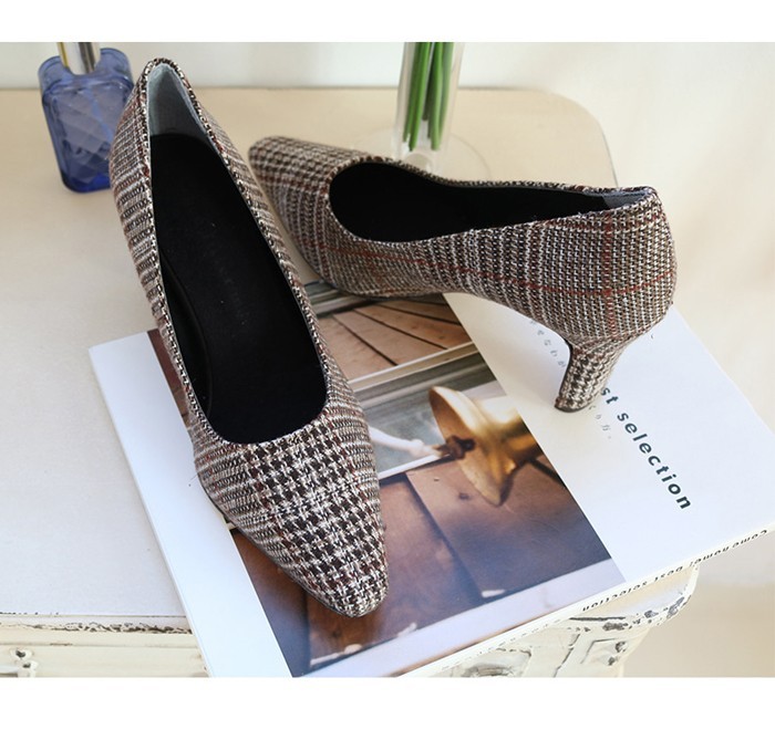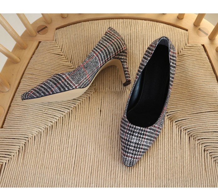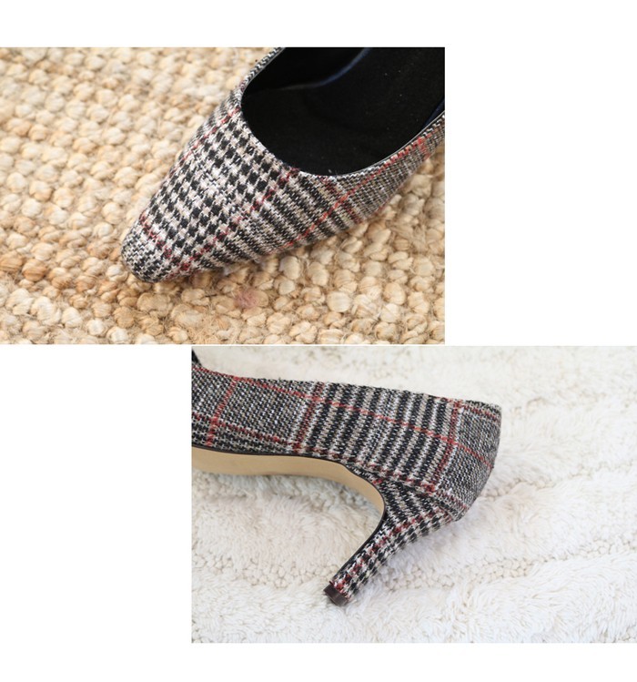 商品名:パンプス レディース ピンヒール チェック ポインテッドトゥ 2017 秋 冬 ファッション 靴 婦人靴