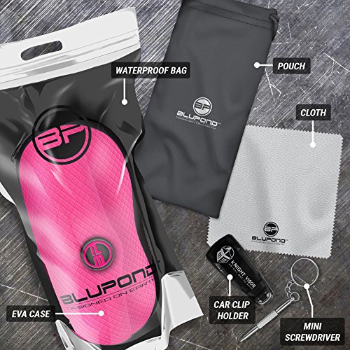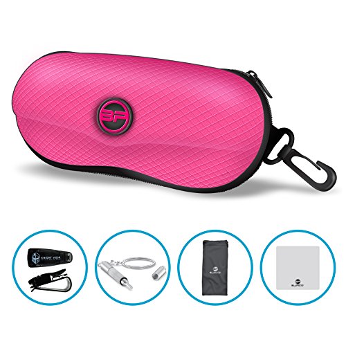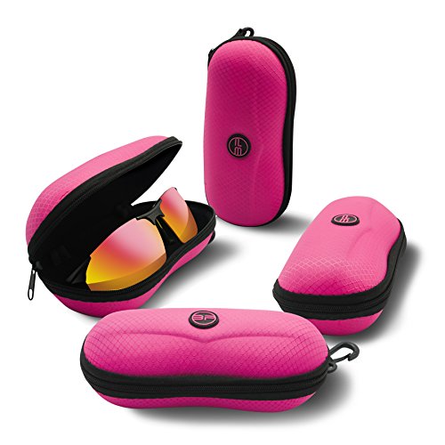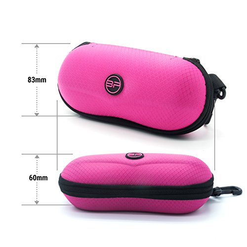 BLUPOND Semi Hard EVA Glasses Case with Hanging Hook 5 IN 1 Set for Sports Sunglasses (Pink)