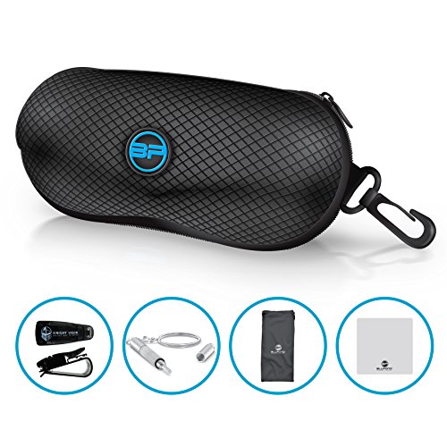 BLUPOND Semi Hard EVA Glasses Case with Hanging Hook 5 IN 1 Set for Sports Sunglasses