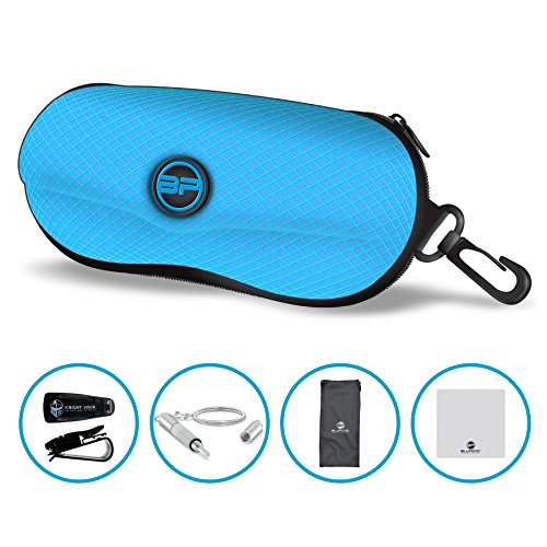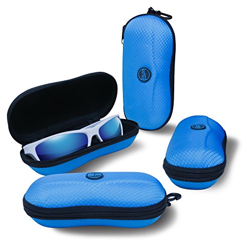 BLUPOND Semi Hard EVA Glasses Case with Hanging Hook 5 IN 1 Set for Sports Sunglasses (Light Blue)