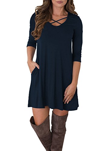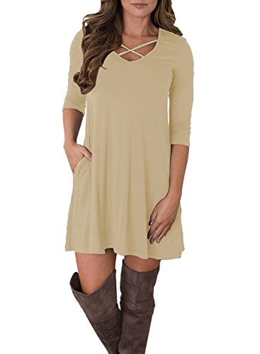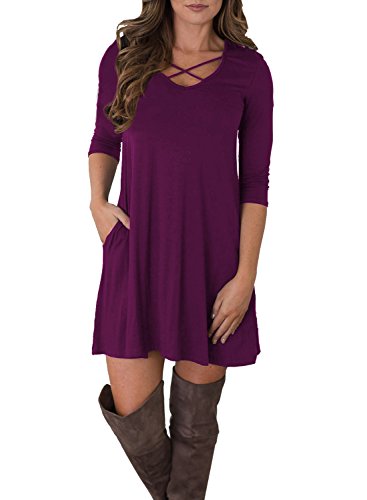 3/4 sleeve, Solid and Good quality, Comfortable fabric, Short length, Loose Fit, V Neck With Side Pockets, T-shirt dress