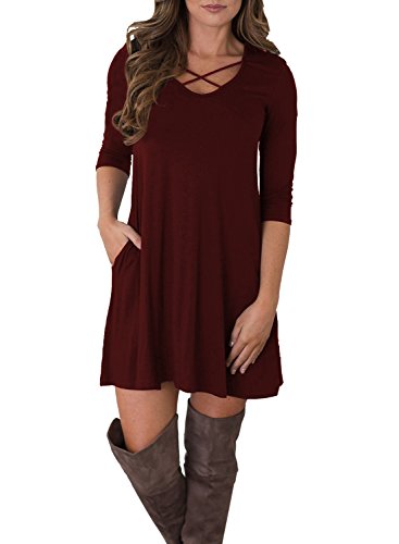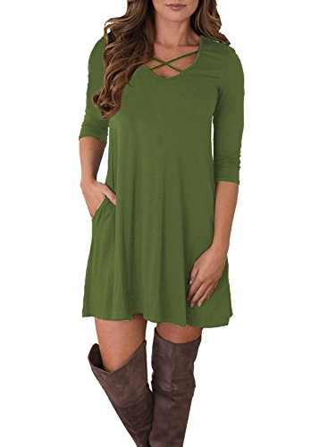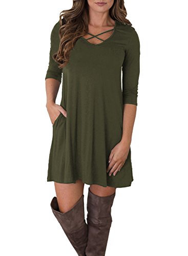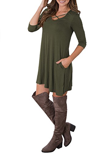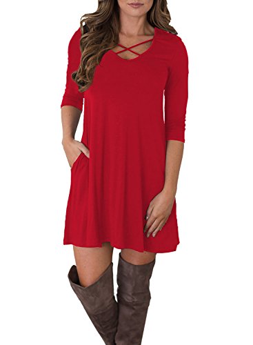 Tunic dress, Loose fit, Criss Cross neck, Swing dress, 3/4 Sleeve, Swing hem, Short length, Tunic top dress, long Tshirt, Casual wear tshirt dress, Ruffle A-Line Dress, Dress with pockets, Sundresses, Super soft, Casual style
