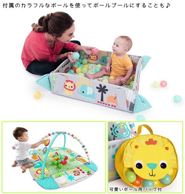 | ボールプールとしても使える大きなプレイジム!!マットは遊び方に合わせて自由自在に広げたり、 四辺を立ち上げたりすることができます。35個のカラフルなボールや、たくさんのおもちゃに赤ちゃんも大喜び!!赤ちゃんが元気な気持ちになるポップサウンドが流れる機能も搭載しています。ボール用のバッグもついているので持ち運びも可能。 |