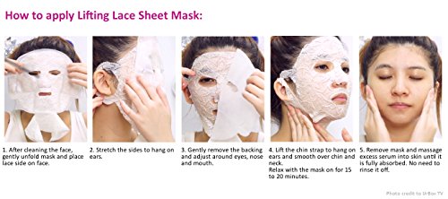 The remaining 4 sheet masks in this set are our cotton lifting lace masks. These stretchy lace masks fit every contour of the face and feature a chin strap to provide lifting and firming benefits. The lace masks include the White Tea & Vitamin C Lace Mask, the Brightening White Yogurt Lifting Lace Mask, the Lychee & Honey Moisturizing Lace Mask and the Lotus & Coix Brightening Lace Mask
