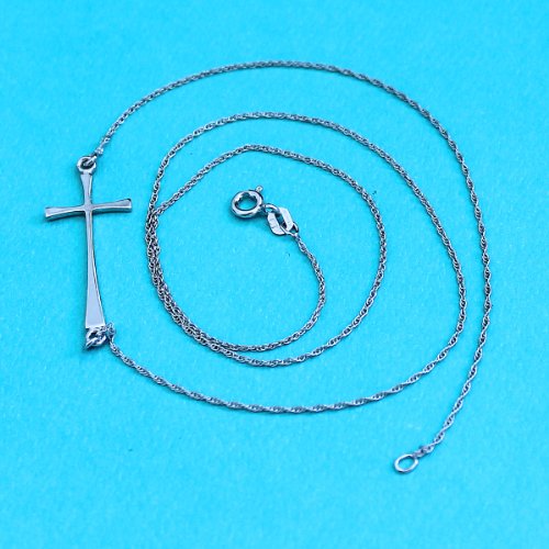 - Title : Sterling Silver Uncentered on the Side Sideways Cross 20" Italian Necklace