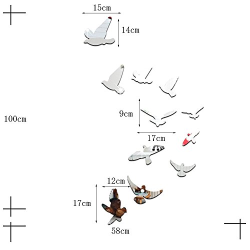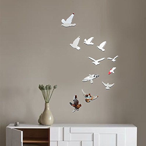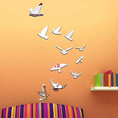ufengke 11-pcs 3D Peace Doves Mirror Effect Wall Stickers Fashion Design Art Decals Home Decoration Silver