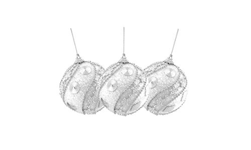 Northlight 3ct White and Silver Beaded and Glittered Shatterproof Christmas Ball Ornaments 3" (75mm)