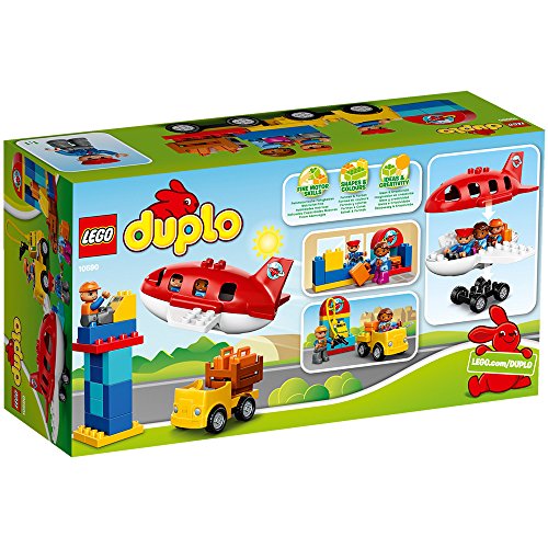 -. Feature : Enthält 3 L.E.G.O DUPLO Figuren: 1 Passagier, 1 Pilot und 1 Flughafenangestellter. / Enthält ein zu bauendes Flugzeug sowie einen zu bauenden Tankwagen sowie einen Gepäckschalter. / Das Zubehör umfasst 2 Koffer, 1 Zapfsäule, einen Schraubenschlüssel, einen Gepäckkorb sowie einen bedruckten Stein mit Flugreisemotiv. / Enthält zusätzliche Steine, um weitere Baumöglichkeiten zu eröffnen / Betanke das Flugzeug für einen Langstreckenflug.