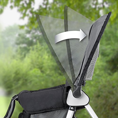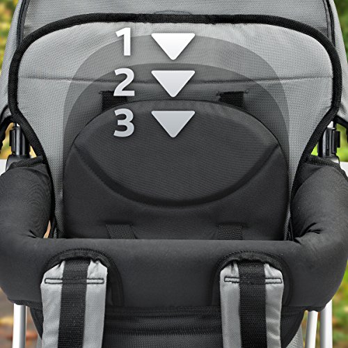 - Feature : Three-position, height-adjustable seat to support your child as they grow / Lightweight, aluminum frame, weighs only 6.5 pounds / Padded straps and energy-absorbing lumbar padding to keep you cool and comfortable / For use with children from 17-40 pounds (approximately 6-36 months) / Freestanding and stable to make loading and unloading virtually effortless