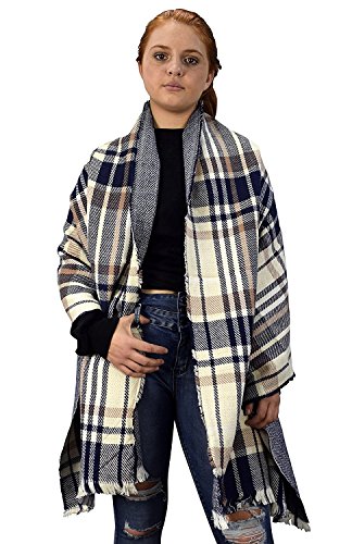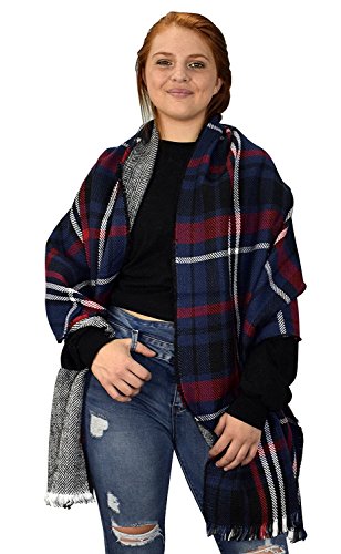 Binding : Apparel Product Description New from Peach Couture (a registered trademark) these extra thick and warm reversible plaid scarf/wrap/shawls are absolutely perfect for the cooler fall and winter seasons. Easily wrap it around your neck as a scarf to beat the cold, as a shawl to wrap yourself in, use it as a poncho over your favorite winter sweater or just toss it over yourself as a full sized blanket! A ½ an inch fringe adds texture to each end of the shawl. Wrap them around your body for a night fire or soccer game. A trendy and luxurious accessory. Product Dimensions (IN): Length- 72" x Width- 28". Material: 100% Acrylic. 0