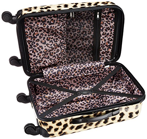 Studio : Fox Luggage Publisher : Fox Luggage Binding : Apparel Product Description This carry-on is made of polycarbonate and abs. The major benefits of this material - it is extremely lightweight, it is durable, and protects the contents of your luggage. Eight multi directional spinner wheels rotate 360 degrees for easy maneuverability. This luggage allows you to pack more while avoiding the excess weight surcharges imposed by most airlines. Multi-directional spinner wheels for easy maneuverability; modern internal chrome telescoping handle with push button handle. Interior mesh and zip pocket and elastic pocket. 20 inch x13 inch x10 inch weighs 6.5 lbs 0