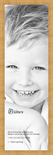 ArtToFrames 10x32 inch Distressed Natural Stain on Basswood Wood Picture Frame, 2WOMJ40038-10x32