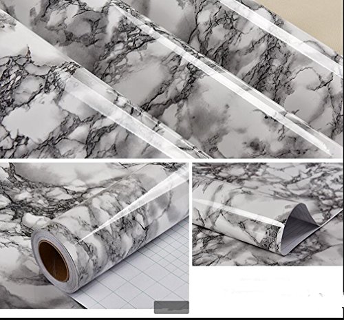 BILLION WALL HOOM 24in x 6.56ft Granite Look Marble Effect Contact Paper Film, Self Adhesive Vinyl paper,Peel-stick Counter Top (Ink black)