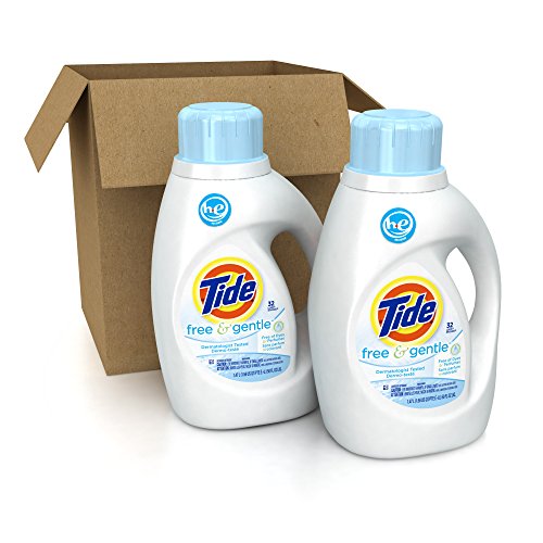 Have peace of mind with Tide Free & Gentle High Efficiency Liquid Laundry Detergent that will keep your clothes brilliantly clean and your family's skin safe. Tide Free and Gentle is a powerful hypoallergenic laundry detergent that is free of dyes and perfumes. It removes more residue from dirt, food and stains than the leading Free detergent. Add Downy Free & Gentle liquid fabric softener and Bounce Free & Gentle dryer sheets to your laundry routine for a cleaner, softer, dermatologist tested laundry experience that is safe on sensitive skin (1). Recommended by leading washing machine manufacturers (2). These are two bottles 50 oz. (32 loads) each of liquid laundry detergent. Try hypoallergenic Tide PODS Free & Gentle with 3-in-1 chamber technology that cleans, protects colors and fights stains. (1) Based on multiple repeat insult and cumulative irritation patch tests performed on hundreds of patients with sensitive skin under dermatologist supervision. (2) Based on co-marketing agreements