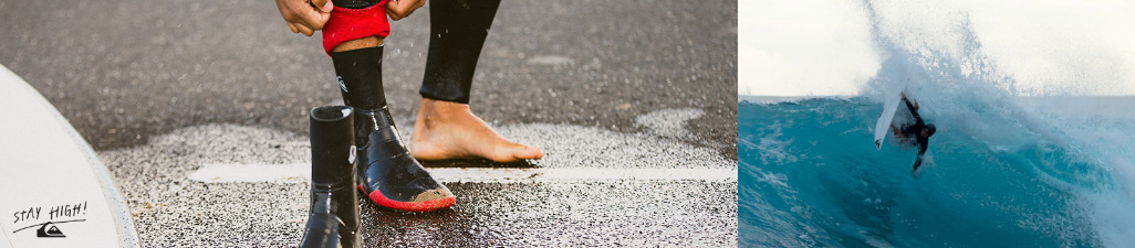 측면 퀵실버 로고가 포인트인 웻수트 부츠. 미끄럼 방지 밑창으로 안전성을 강화했다.