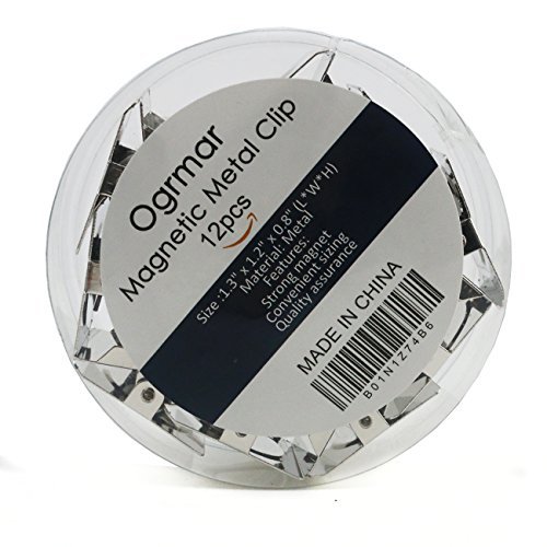Ogrmar Refrigerator Whiteboard Wall Magnetic Memo Note Clip Metal Clip, 12 Piece