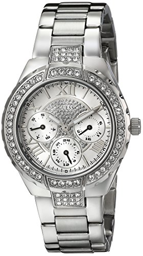 Define Your Time with this GUESS Sparkling High Energy Silver-Tone Mid-Size Multi-Function Watch