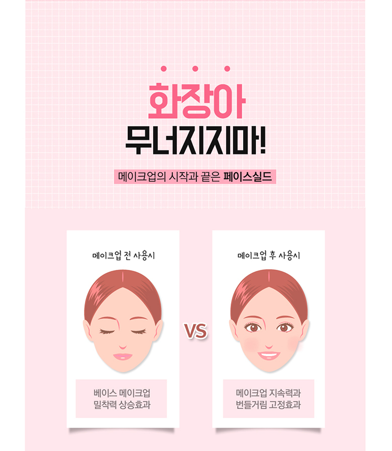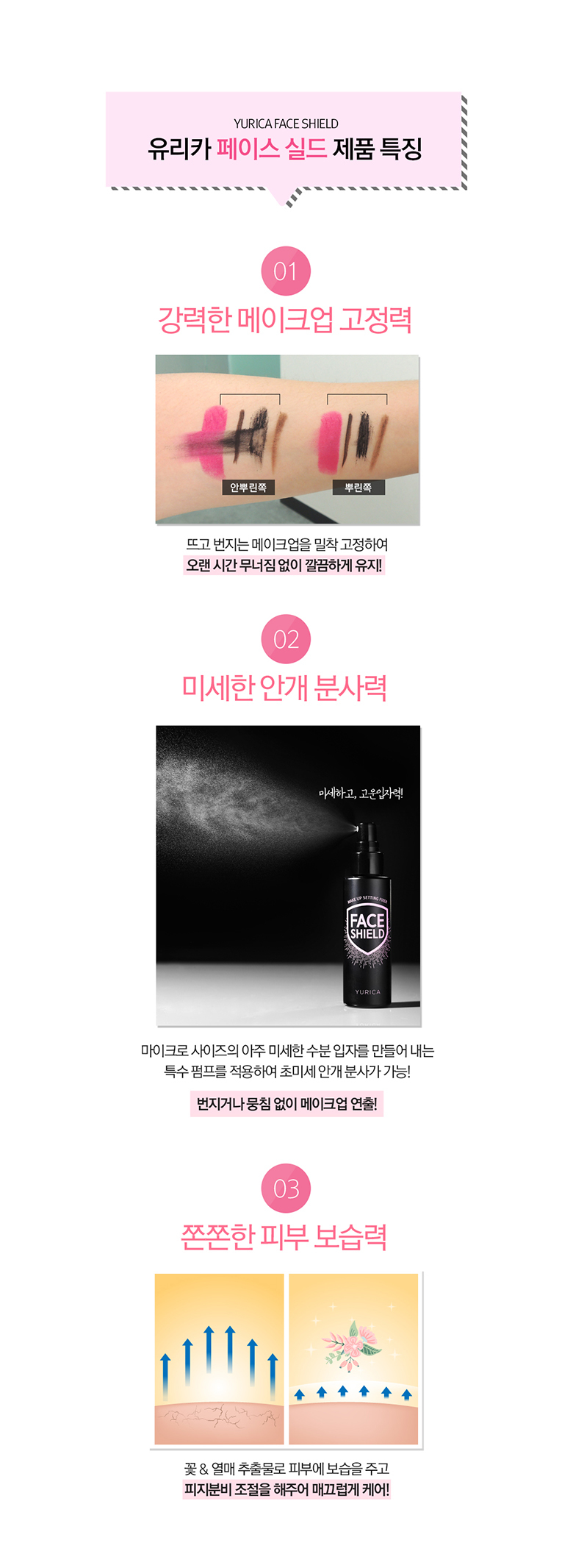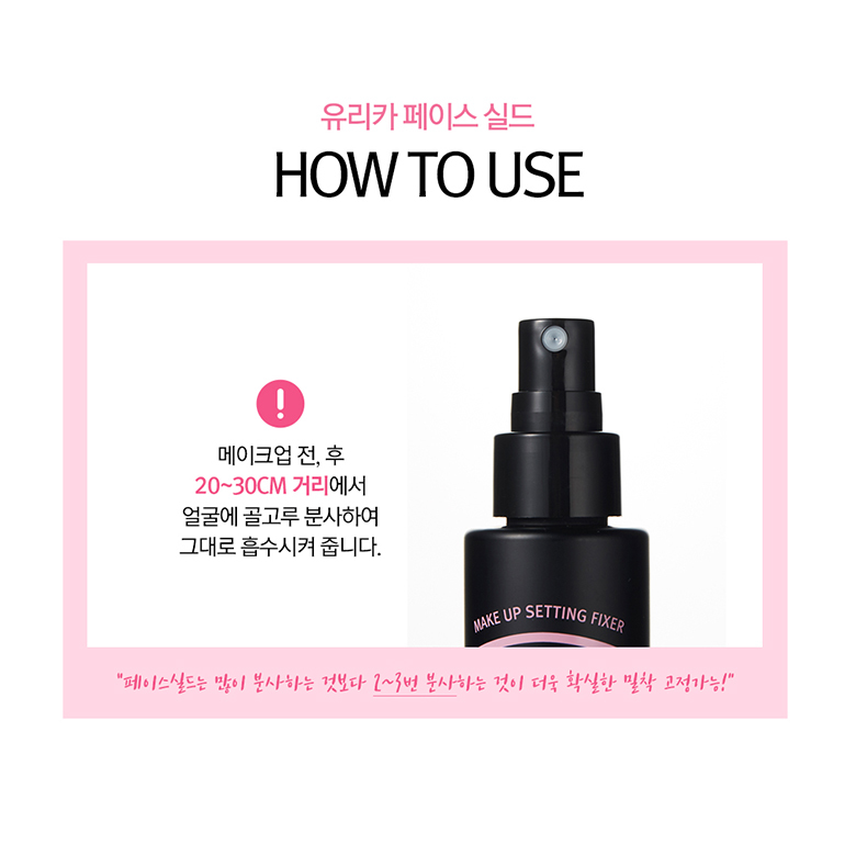Spray at the face from a 20~30cm distance in the last step of make-up