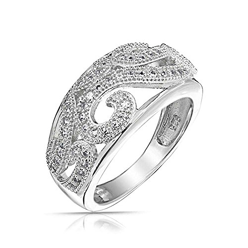 -. Title : Bling Jewelry Pave Clear CZ Vintage Style Swirl Ring 925 Sterling Silver