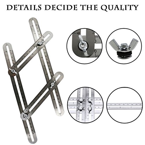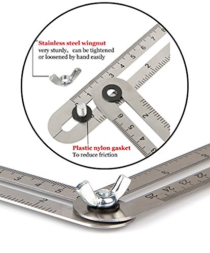 - √ ACCURATE AND STURDY MULTI ANGLE MEASURING TOOL-The angleizer template tool is perfect for precise and accurate angle measurements.Multi angle template tool and ruler with centimeters and inches. The angle-izer template tool is accurate and clear, easy to read, good for precise and accurate angle measurements with iron knobs to hold it in place. Adjusting the four wingnuts to fit all shapes & angles,can be tighened or loosened easily as a reusable stencil for endless applications.