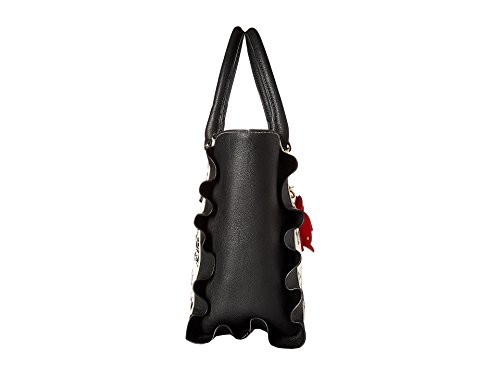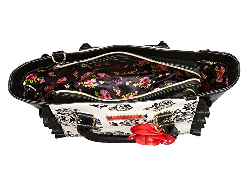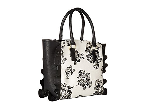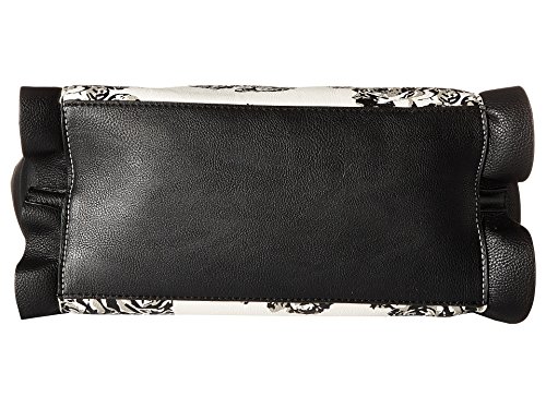 The Betsey Johnson® Leather & Lace Satchel is the perfect combination of feminine and edgy style! Made of synthetic leather. Zipper closure. Two rolled carrying handles. Removable and adjustable crossbody strap. Exterior features ruffle accents and a removable charm detail. Flat base. Lined interior features one zip and two slip pockets. Imported. Measurements: Bottom Width: 10 in Depth: 4 1⁄2 in Height: 10 in Strap Length: 19 in Strap Drop: 8 1⁄2 in Accessory Strap Length: 38 in Accessory Strap Drop: 18 in Weight: 1 lb 11.8 oz This product may have a manufacturer's warranty. Please visit the manufacturer's website or contact us at warranty@support.zappos.com for full manufacturer warranty details.Feature