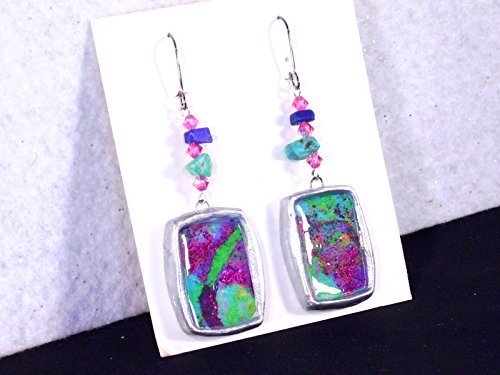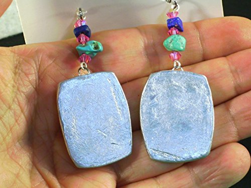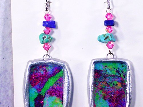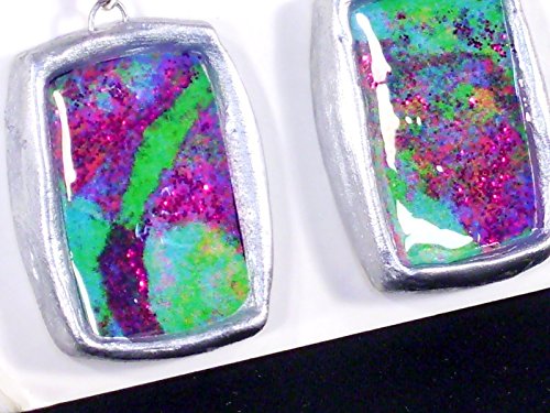 -. Brand : Donutz Studio -. Color : Multi Color -. Department : Women -. ProductGroup : Guild Product -. ProductTypeName : GUILD_JEWELRY -. Title : 1.25" Mod Statement Earrings Turquoise Green Pink Purple Metallic Silvertone Chunky Abstract Modern Art Clay