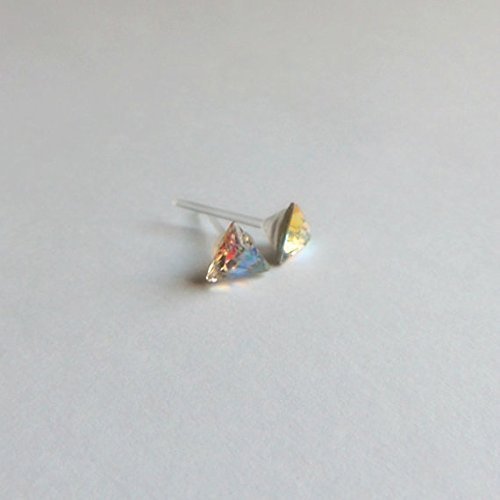-. Title : Triangle Shape Pointed Back Rhinestone Earrings on Hypoallergenic Plastic Posts for Metal Sensitive Ears