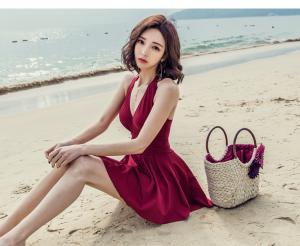 ホルターネックのセクシーキュートさと女性らしいフレアースカートがマッチした1枚♪