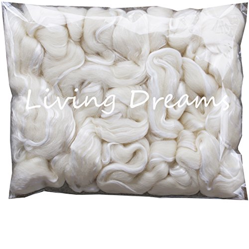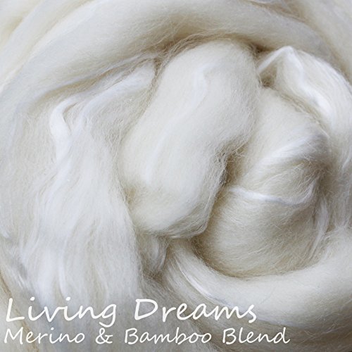SPINNING FIBER FELTING WOOL Super Soft Merino Bamboo Combed Top Roving for Hand Spinning, Needle Felting, Wet Felting, Soap Making and Dryer Balls. Pure Natural White