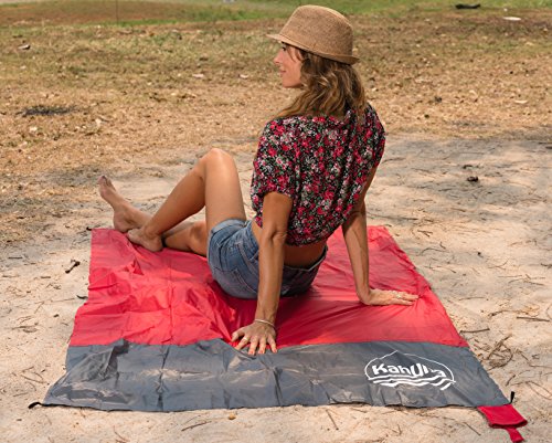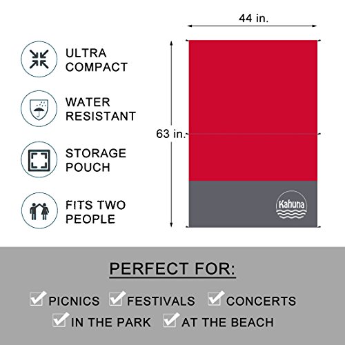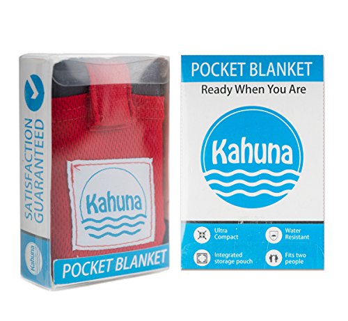 KAHUNA Pocket Blanket - Waterproof Outdoor Blanket. The Perfect Pocket Size Blanket for Travel, Picnic and Camping. Ideal Ground Sheet For a Concert or Festival, or a Sand Free Day at the Beach - Red