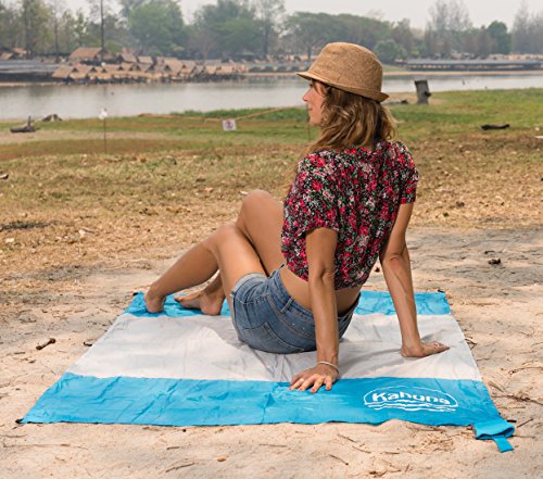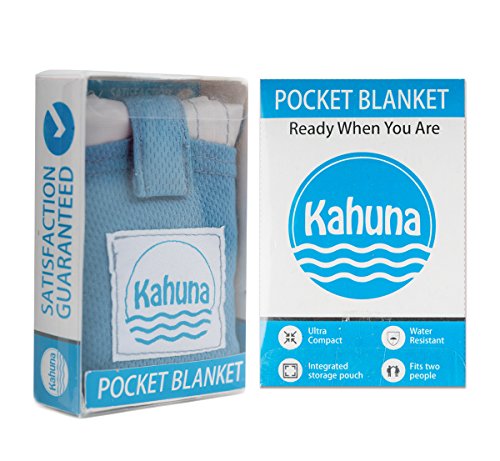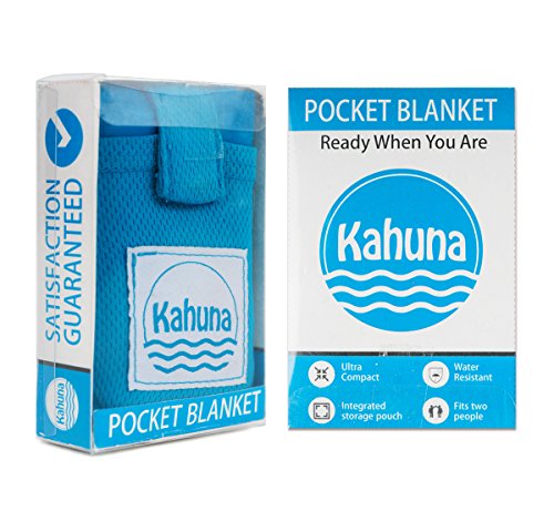KAHUNA Pocket Blanket - Waterproof Outdoor Blanket. The Perfect Pocket Size Blanket for Travel, Picnic and Camping. Ideal Ground Sheet For a Concert or Festival, or a Sand Free Day at the Beach - Blue