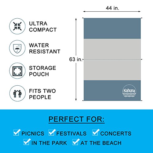 KAHUNA Pocket Blanket - Waterproof Outdoor Blanket. The Perfect Pocket Size Blanket for Travel, Picnic and Camping. Ideal Ground Sheet For a Concert, Festival or a Sand Free Beach Day - BLUE-GRAY