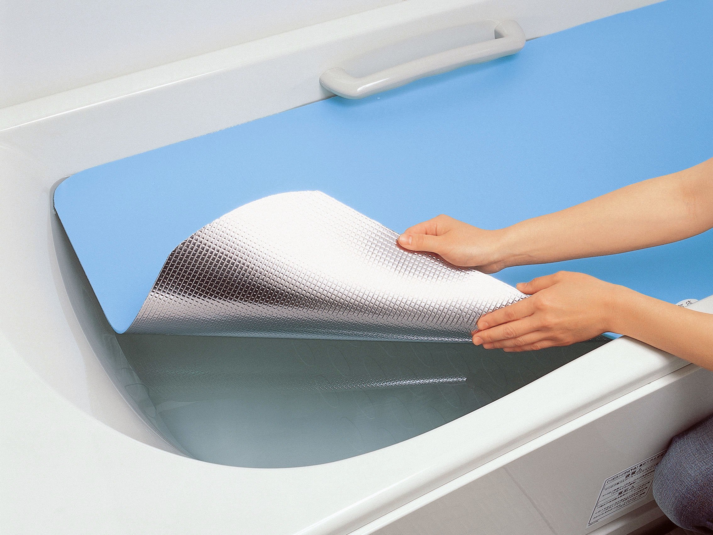 Heat retaining sheet that keeps warming power of foamed polyethylene and thermal reflection of aluminum difficult to cool hot water in bath.
