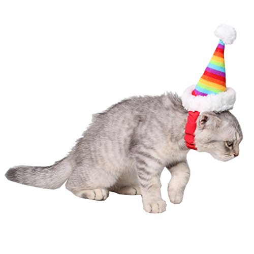 -. Feature : The mini rainbow Christmas hat is made from short plush materials.It is bright and kawaii for your pet. / This headband is very soft,skin-friendly,and stretchy,so your dog cat head will feel super comfortable. / The headband is secured and flawless.and adjustable elastic strap under chin to keep the hat on safely. / The overall design is simple and generous,festive air is strong,It is perfect for Christmas parties. / Fit for pet parties,weekend parties,birthday parties,photo shoots,daily wear or any other occassions.