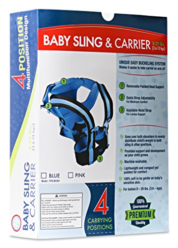 -. Feature : THE ONLY BABY CARRIER YOU WILL EVER NEED FROM NEWBORN TO TODDLER- You will no longer need to purchase a sling and then a carrier when this one does both! 4 position design - sling, front facing, rear facing, and backpack for babies 8-29 lbs. (3.6 - 13 kg). - A multifunctional carrier you will enjoy for years! / CREATED FOR YOUR COMFORT AND CONVENIENCE TOO -Adjustable padded lumbar waist belt and shoulder straps reduces back and shoulder strain for you and a padded headrest for them- Storage pocket for diapers and wipes - Makes wearing it enjoyable for you both! / EASY IN & OUT BUCKLING SYSTEM- Quick strap adjustments of the double clasp buckles makes it easy to take on and off with one hand - Straps, waist belt and buckles designed to not rub or chafe on you or your baby - Changing diapers just got faster and easier with this carrier! / 100% SOFT BREATHABLE FABRIC -Gentle on baby's sensitive skin- Lightweight and compact yet padded for comfort - Washable and easy to fold, packs nice for travel - The perfect necessity for all your daily excursions! / LOVE THIS 4 POSITION BABY CARRIER OR YOUR MONEY BACK - Your satisfaction is our main concern. Know that your purchase is backed by Amazon's return policy and our no questions asked return guarantee. Every purchase supports Breast Cancer Research. You can't beat this deal anywhere, what are you waiting for?